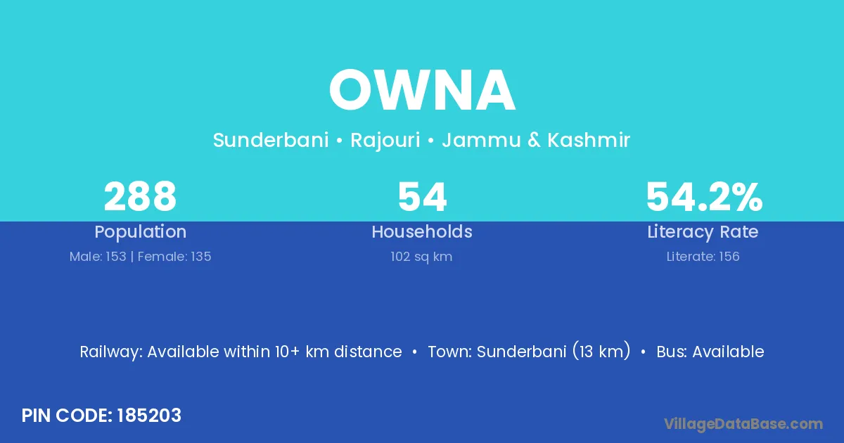 Sunderbani (13 km) is the nearest town to Owna village for major economic activities and is located approximately 13 km away.