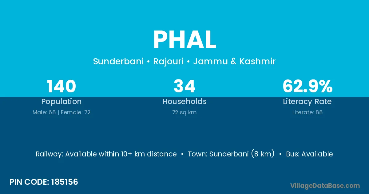 Sunderbani (8 km) is the nearest town to Phal village for major economic activities and is located approximately 8 km away.