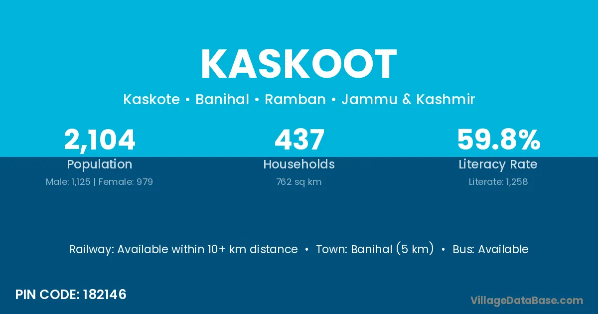 Banihal (5 km) is the nearest town to Kaskoot village for major economic activities and is located approximately 5 km away.