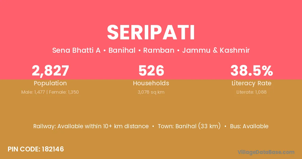 Banihal (33 km) is the nearest town to Seripati village for major economic activities and is located approximately 33 km away.