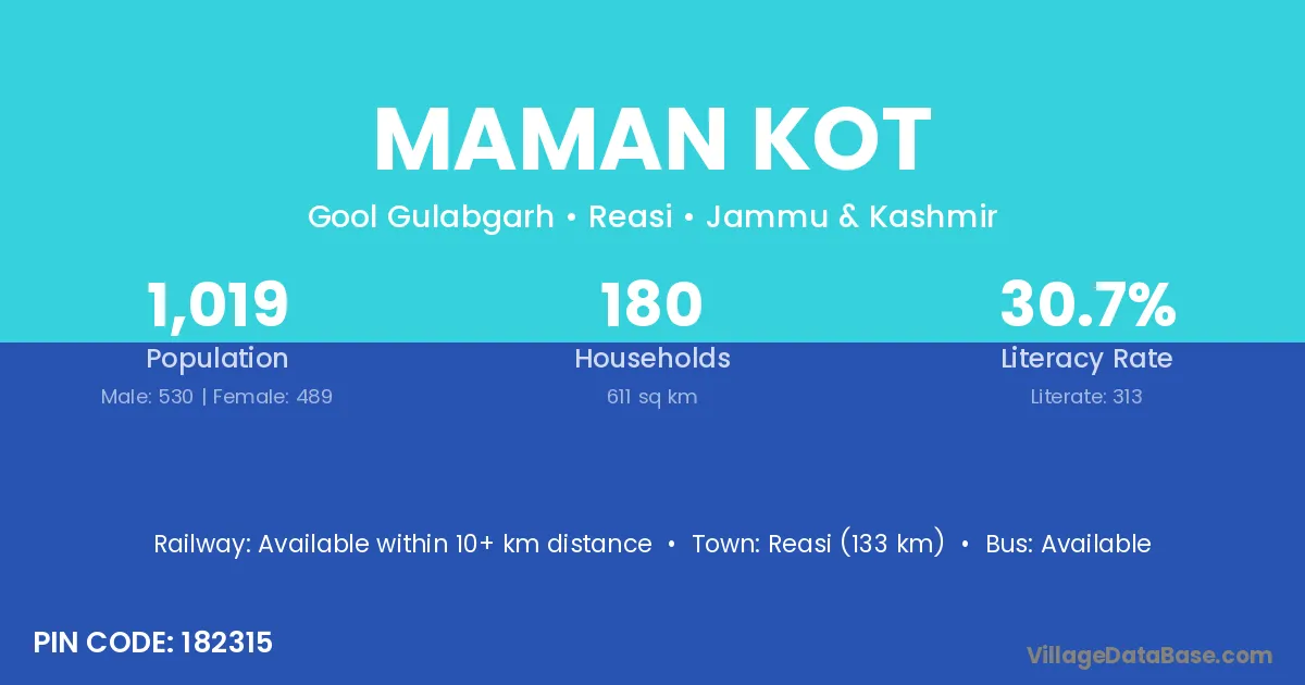 According to Census 2011 information, the village code of Maman Kot village is 182315.