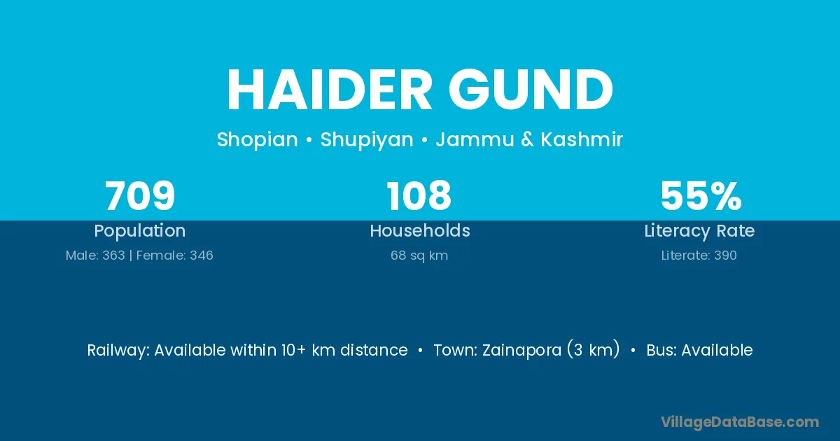 Zainapora (3 km) is the nearest town to Haider Gund village for major economic activities and is located approximately 3 km away.