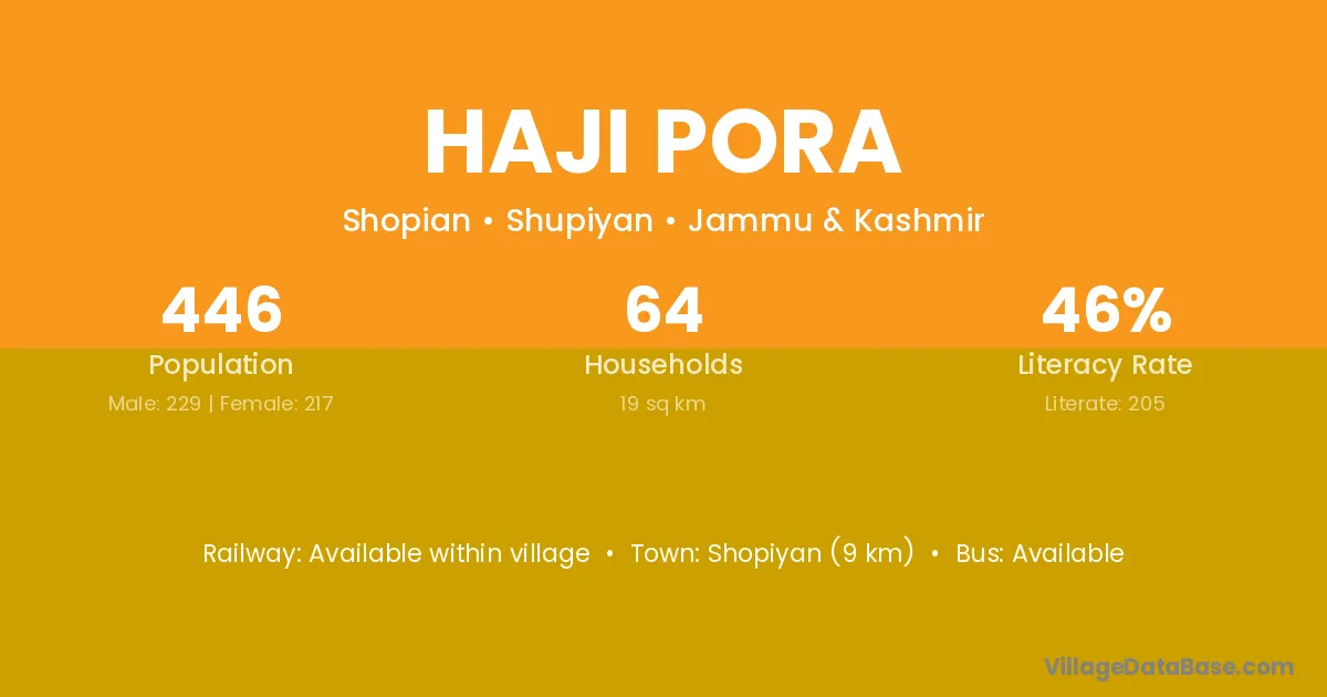 Haji Pora village has a total population of 446 people, of which 229 are males and 217 are females.