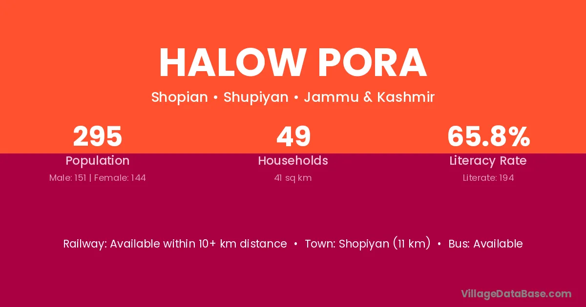 Shopiyan (11 km) is the nearest town to Halow Pora village for major economic activities and is located approximately 11 km away.