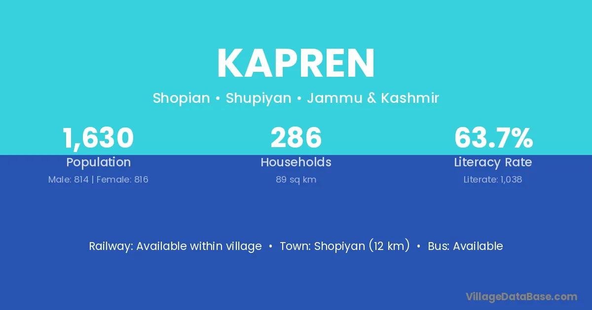 Shopiyan (12 km) is the nearest town to Kapren village for major economic activities and is located approximately 12 km away.