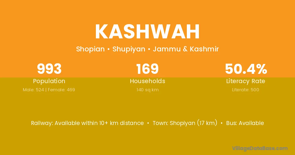Shopiyan (17 km) is the nearest town to Kashwah village for major economic activities and is located approximately 17 km away.