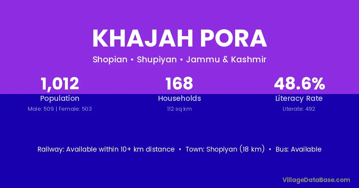 Khajah Pora village has a total population of 1,012 people, of which 509 are males and 503 are females.