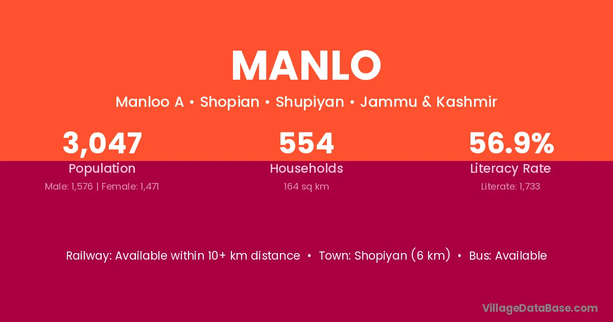 Shopiyan (6 km) is the nearest town to Manlo village for major economic activities and is located approximately 6 km away.