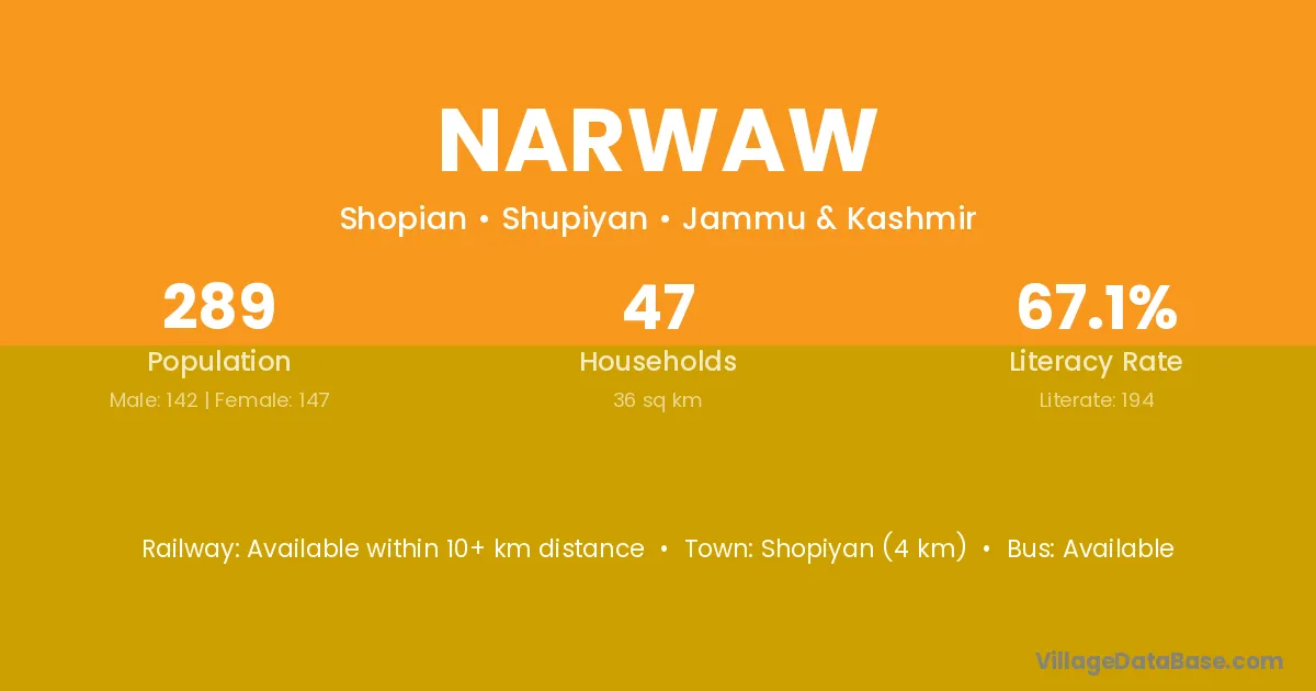 Shopiyan (4 km) is the nearest town to Narwaw village for major economic activities and is located approximately 4 km away.
