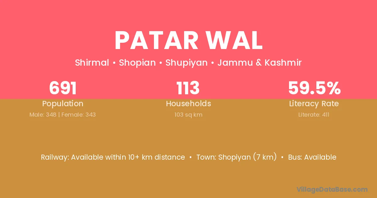 Shopiyan (7 km) is the nearest town to Patar Wal village for major economic activities and is located approximately 7 km away.