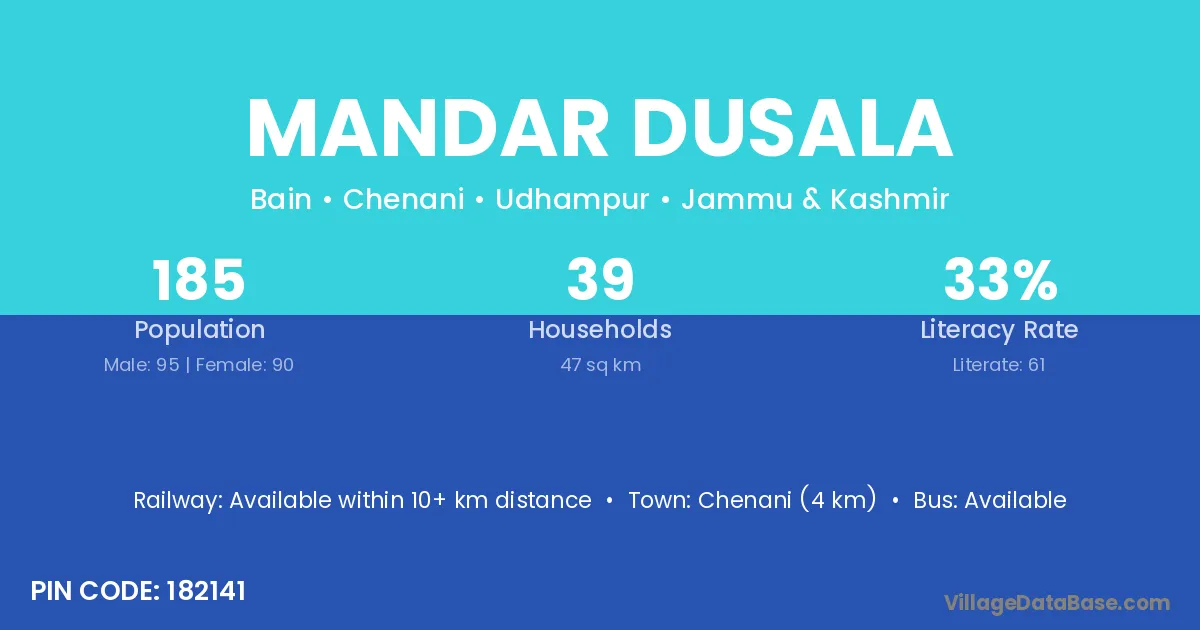 Mandar Dusala village is located in the Chenani Tehsil of the Udhampur district in Jammu & Kashmir .