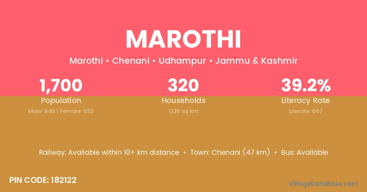 Chenani (47 km) is the nearest town to Marothi village for major economic activities and is located approximately 47 km away.