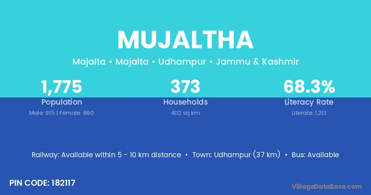 Udhampur (37 km) is the nearest town to Mujaltha village for major economic activities and is located approximately 37 km away.