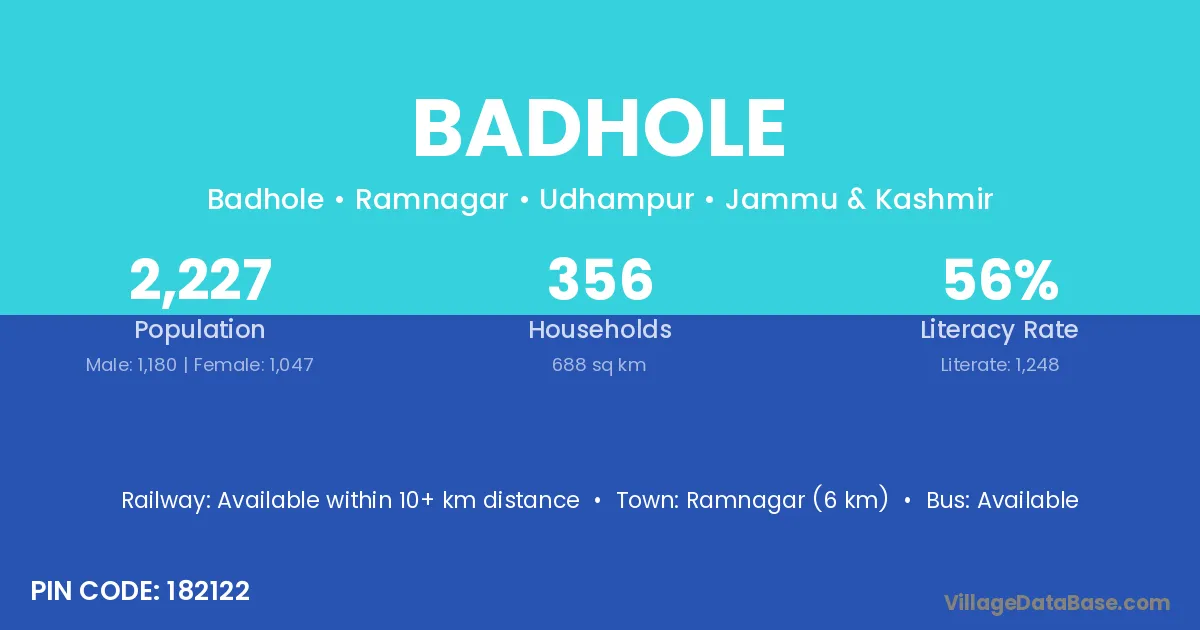 According to Census 2011 information, the village code of Badhole village is 182122.