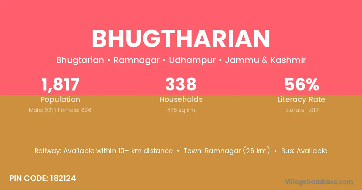 Ramnagar (26 km) is the nearest town to Bhugtharian village for major economic activities and is located approximately 26 km away.