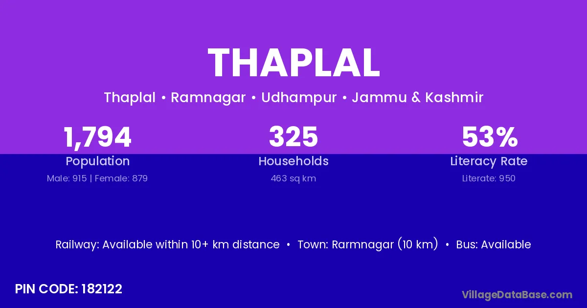 According to Census 2011 information, the village code of Thaplal village is 182122.