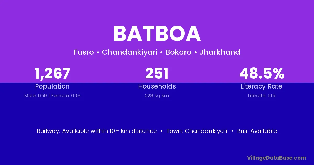 Batboa village has a total population of 1,267 people, of which 659 are males and 608 are females.