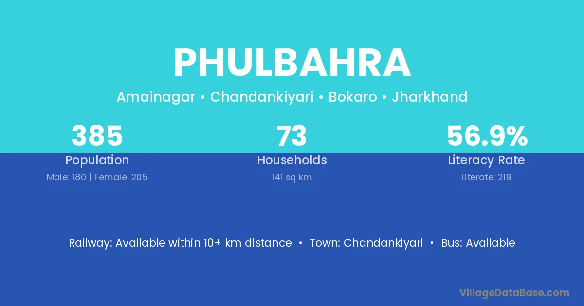 Phulbahra village has a total population of 385 people, of which 180 are males and 205 are females.