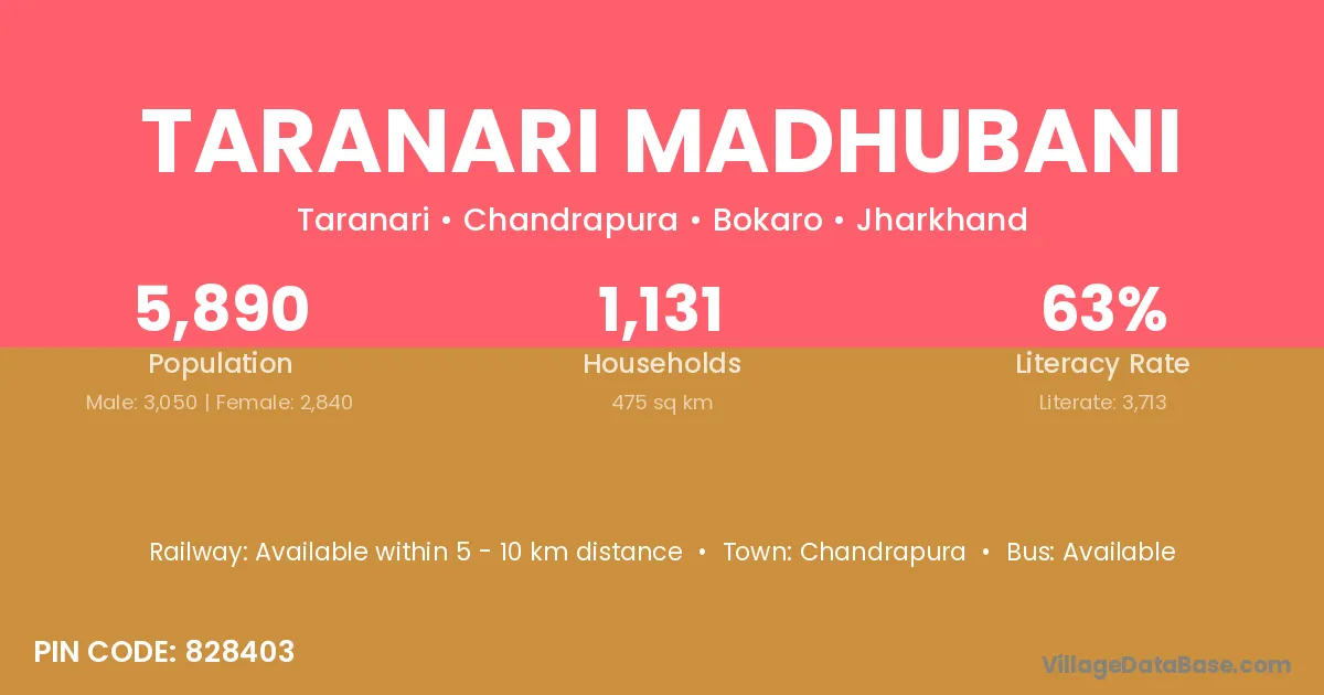 According to Census 2011 information, the village code of Taranari Madhubani village is 828403.