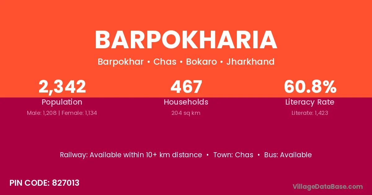 Chas is the nearest town to Barpokharia village for major economic activities