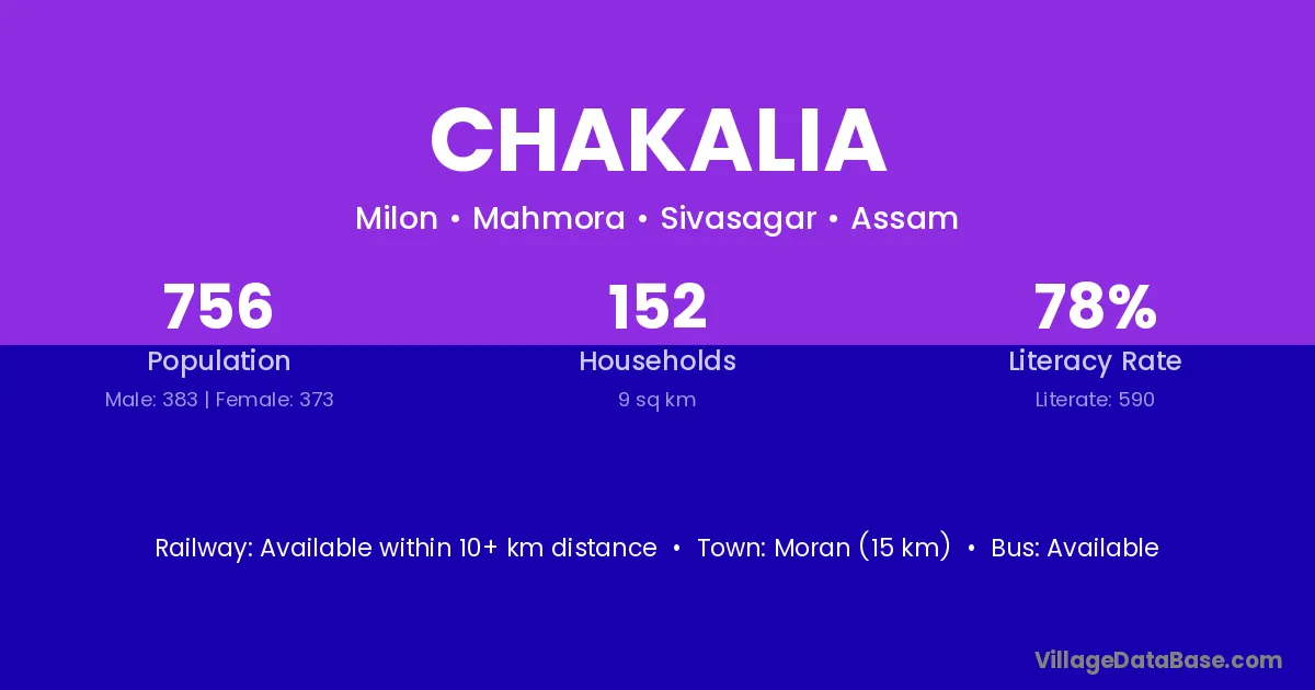 There are approximately 834 households in Chakalia village.