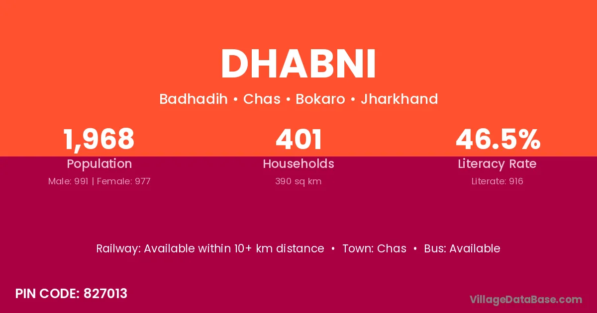 Dhabni village is located in the Chas Subdivision of the Bokaro district in Jharkhand .