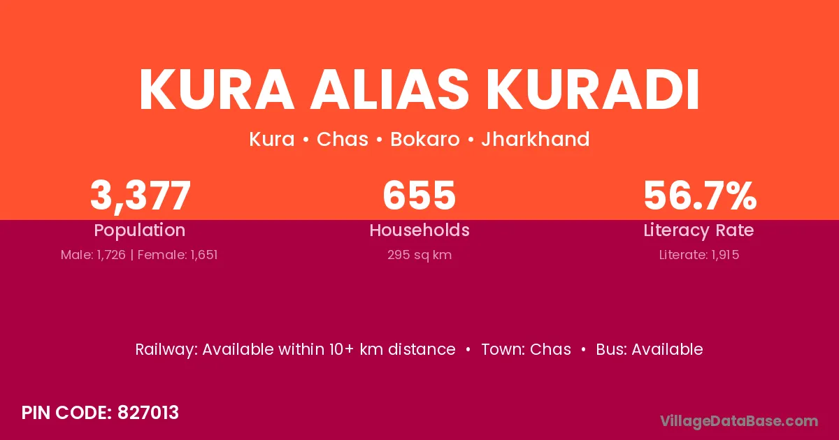 Kura Alias Kuradi village has a total population of 3,377 people, of which 1,726 are males and 1,651 are females.