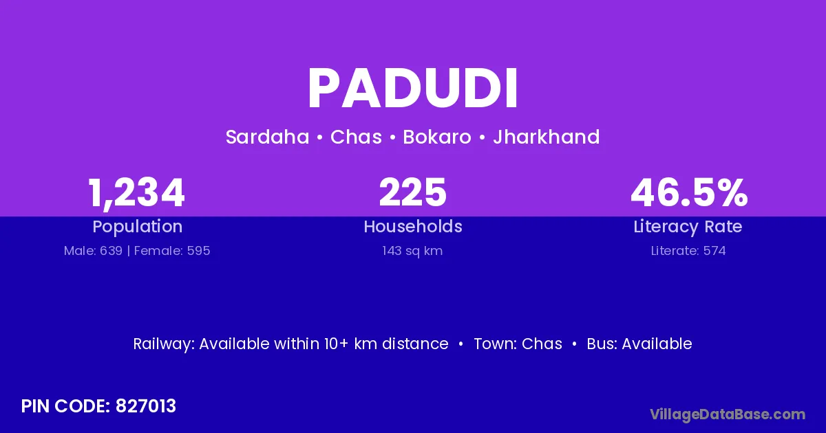 Padudi village has a total population of 1,234 people, of which 639 are males and 595 are females.