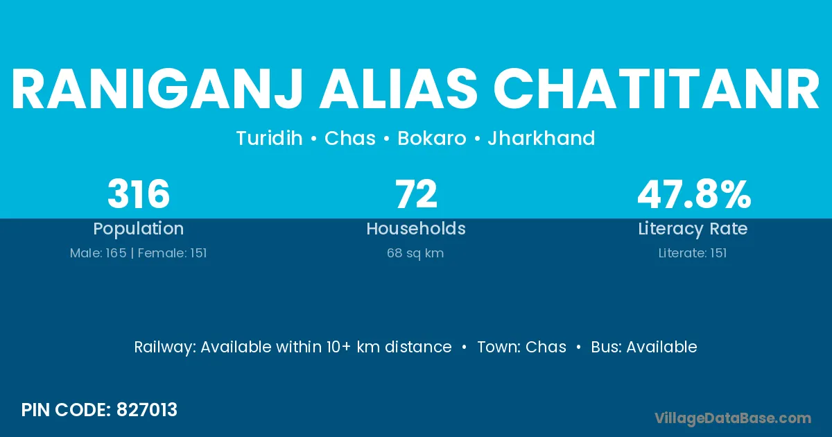 Raniganj Alias Chatitanr village has a total population of 316 people, of which 165 are males and 151 are females.