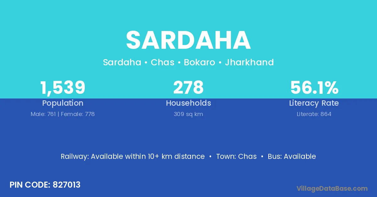 Sardaha village has a total population of 1,539 people, of which 761 are males and 778 are females.