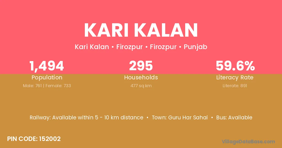 The population of Kari Kalan village is distributed between literate and illiterate residents as follows: