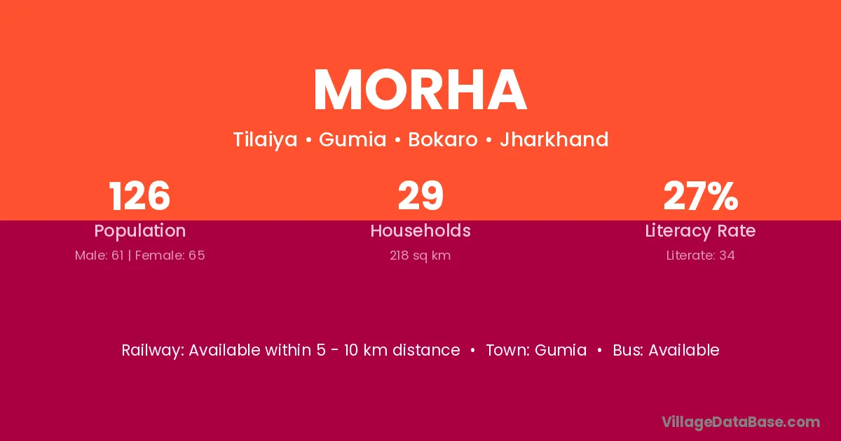 Gumia is the nearest town to Morha village for major economic activities