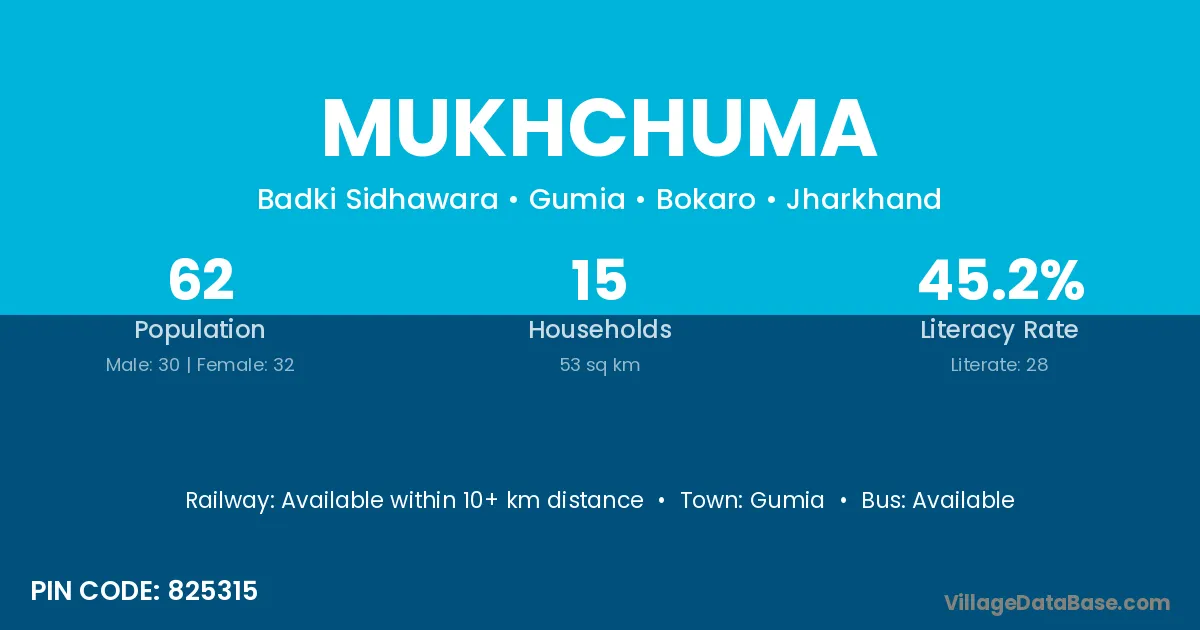 Gumia is the nearest town to Mukhchuma village for major economic activities