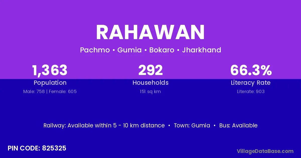Rahawan village has a total population of 1,363 people, of which 758 are males and 605 are females.