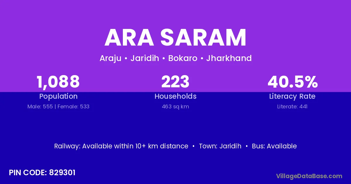 Jaridih is the nearest town to Ara Saram village for major economic activities