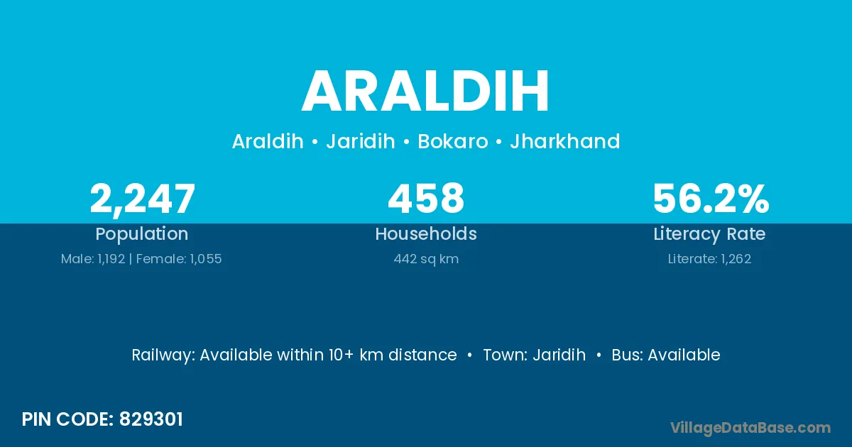 Jaridih is the nearest town to Araldih village for major economic activities