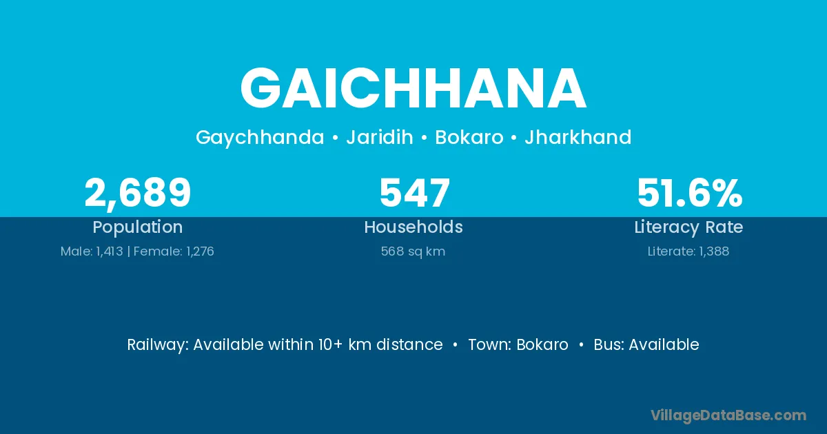 Bokaro is the nearest town to Gaichhana village for major economic activities