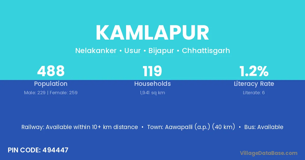 Kamlapur village has a total population of 1,007 people, of which 507 are males and 500 are females.