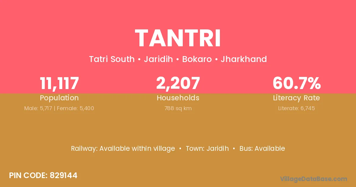 Tantri village has a total population of 11,117 people, of which 5,717 are males and 5,400 are females.