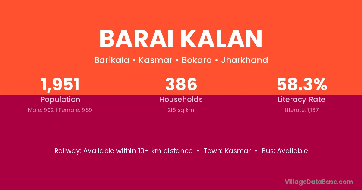 Kasmar is the nearest town to Barai Kalan village for major economic activities