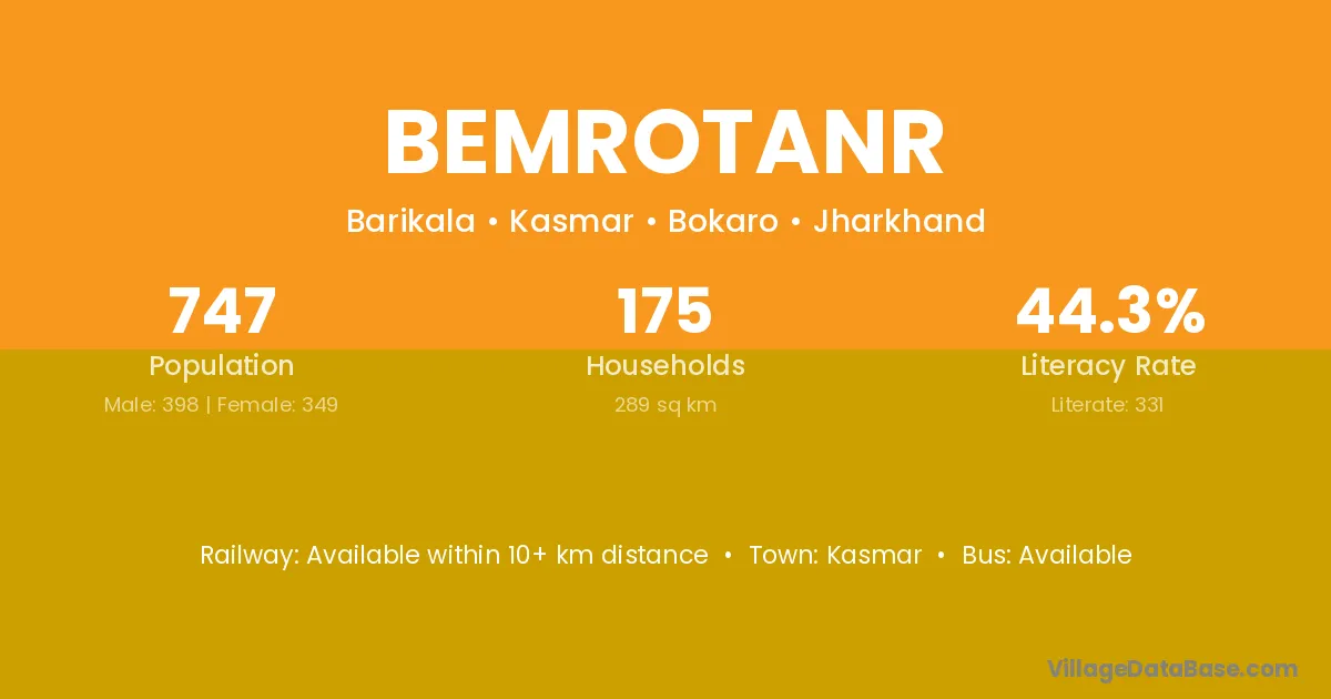 Bemrotanr village has a total population of 747 people, of which 398 are males and 349 are females.