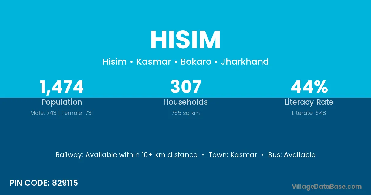 Hisim village is located in the Kasmar Subdivision of the Bokaro district in Jharkhand .