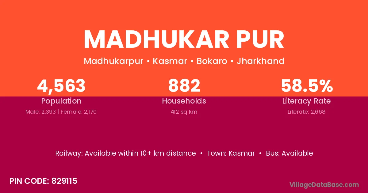 Kasmar is the nearest town to Madhukar Pur village for major economic activities
