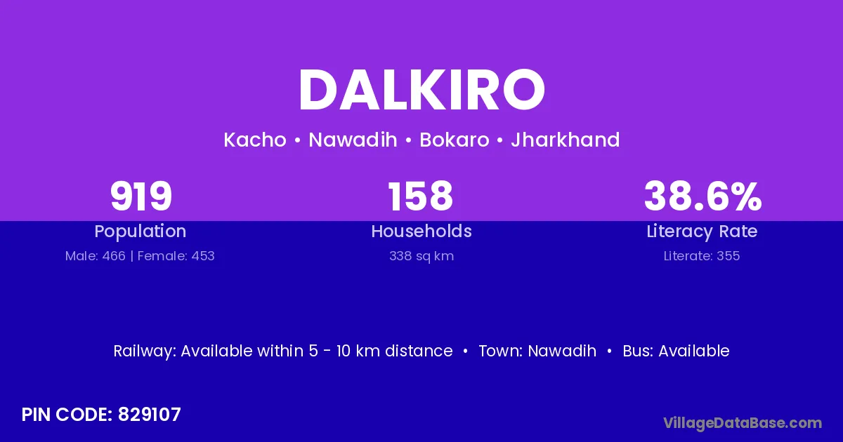 According to Census 2011 information, the village code of Dalkiro village is 829107.