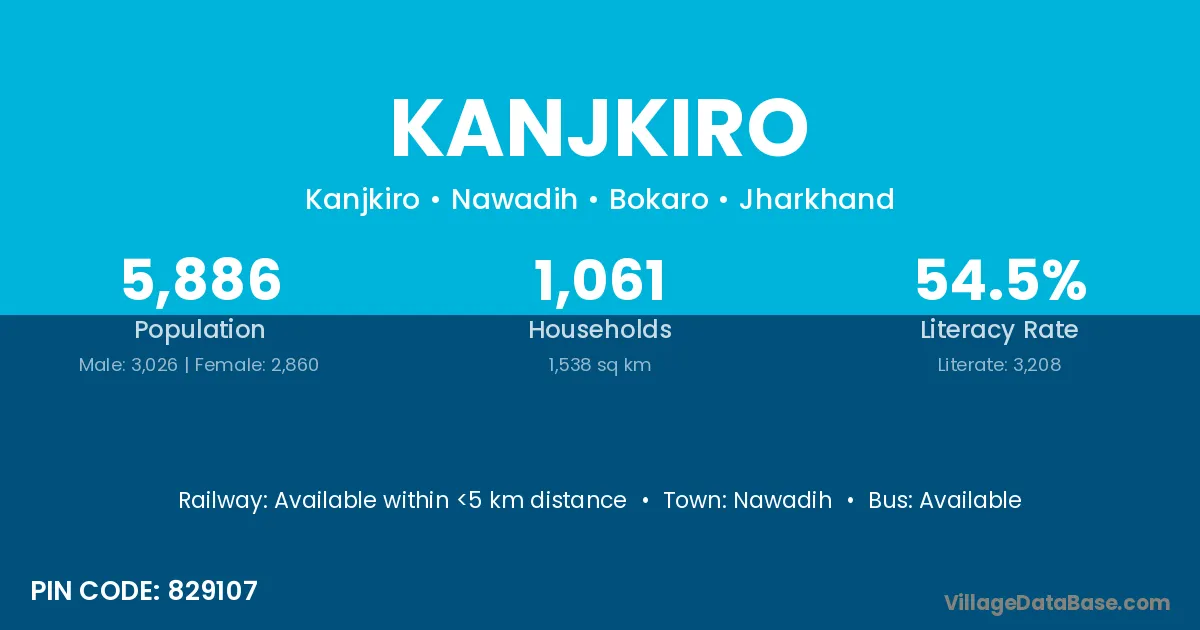 Kanjkiro village has a total population of 5,886 people, of which 3,026 are males and 2,860 are females.