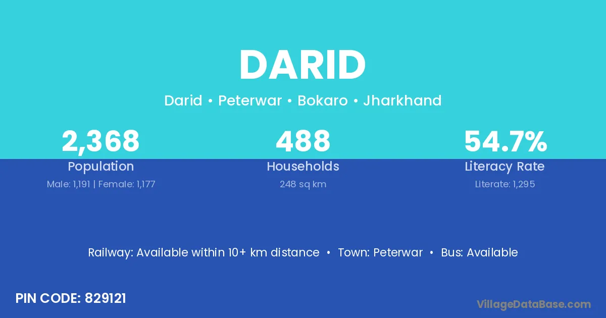 According to Census 2011 information, the village code of Darid village is 829121.