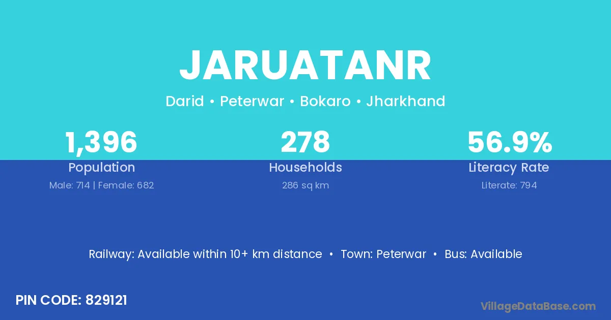 Jaruatanr village has a total population of 1,396 people, of which 714 are males and 682 are females.