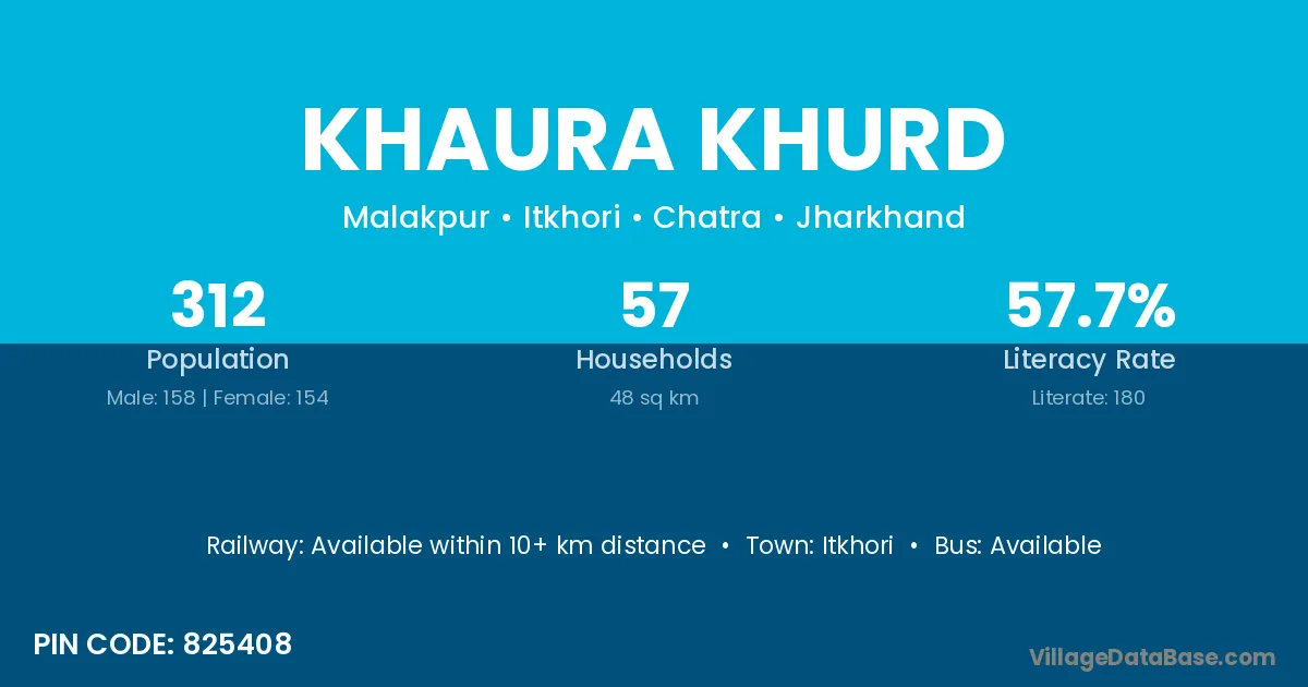 Khaura Khurd village has a total population of 312 people, of which 158 are males and 154 are females.