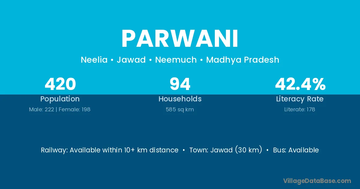 According to Census 2011 information, the village code of Parwani village is 825408.
