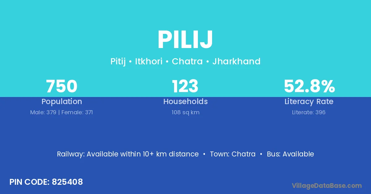 Pilij village has a total population of 750 people, of which 379 are males and 371 are females.